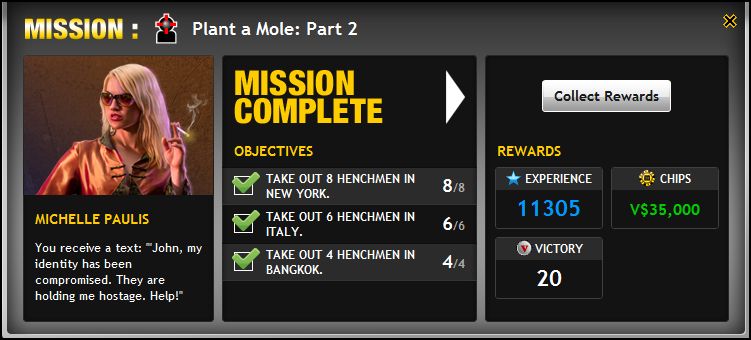 I finally finished all the new Missions and updated the New Missions Review article (1). Some of the Missions are buggy and I ran into some problems. I'll review some of the common bugs right now and what you can do to work around them. The major stumbling block players are having is in the Mission Plant a Mole. There are 3 parts and I had a problem with each one. Again, I did these Missions on a high level energy account so my pay outs are a lot larger than the average players would be.