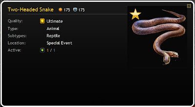 The loot item reward was a Two-Headed Snake and there were only a Gold, Silver and Bronze level awarded to the first 3 Families. Here are all three items shown as active in player inventories.