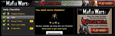 It's been a little short of a year since I posted about a new big Zynga game called Warstorm (1). You may remember it was all over Mafia Wars. We anticipated a cross game promotion but that never happened.