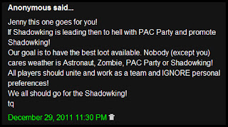 There are a little over 5 days left of the New Year's Resolutions Event. If you want to have as many loot items in your inventory with stats of 122/122 than you should use your votes for Ms. PAC Party as this will be the obvious winner.