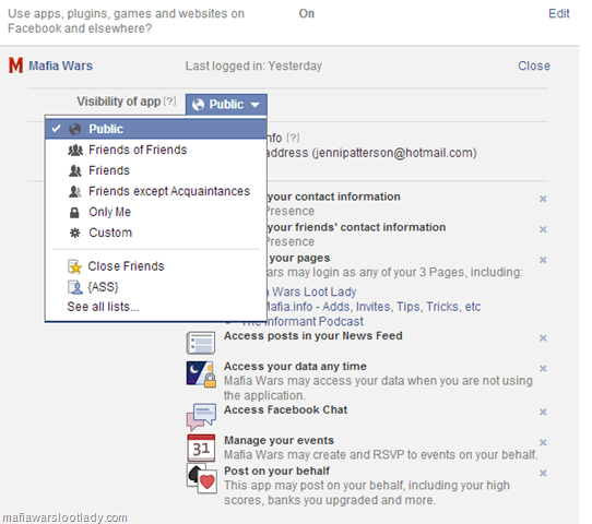 If you want to take their advice, go to the App Setting page and edit Mafia Wars to make your requests, which nobody will look at anyway visible. If you haven’t done this then it’s a good idea to do it for other types of begging events but makes no difference for this one.