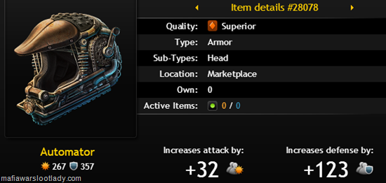 Two loot items labeled Marketplace have been added to the inventory. These will most likely appear in High Rollers’ Packs or one of the other gimmicks offered in the Marketplace. At least they are admitting that automation is necessary in Mafia Wars!