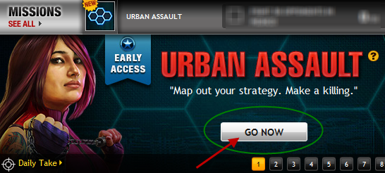 A: To start playing Urban Assault, click on the Missions tab or “Go Play” on the Home Page module.