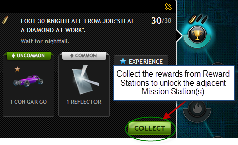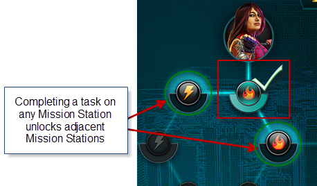 A Reward StationThere are a total of 30 Mission Stations, each containing one or more tasks. Completing a task at a Mission Station will unlock adjacent Mission Station(s).