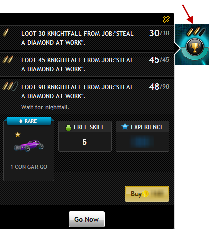 A: At any given time during the event, click on the Trophy icon on the right corner of Urban Assault game board to view the status of Rewards: