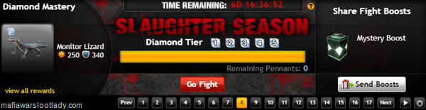 Slaughter Season: 11 is now available and like last time we need 3,000 Pennants which is a nerf from the standard 2,000. In case you forgot how these things work, go here for more detailed instructions and the milestone rewards. The loot item is not awarded until the event expires so don’t have a panic attack if you finish and go looking for it.